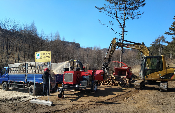 綠友集團總部森防裝備事業部、售后服務部、撫順綠友園林機械有限公司協同在撫順市大伙房實驗林場現場給參會人員講解、演示了GREENMAN CM15R病疫木粉碎機、CH25C病疫木粉碎機在山場就地粉碎處理感染松材線蟲病疫木方案,與會嘉賓紛紛記錄、拍照,索取資料,積極響應國家關于松材線蟲病疫木山場就地粉碎處理的相關政策。