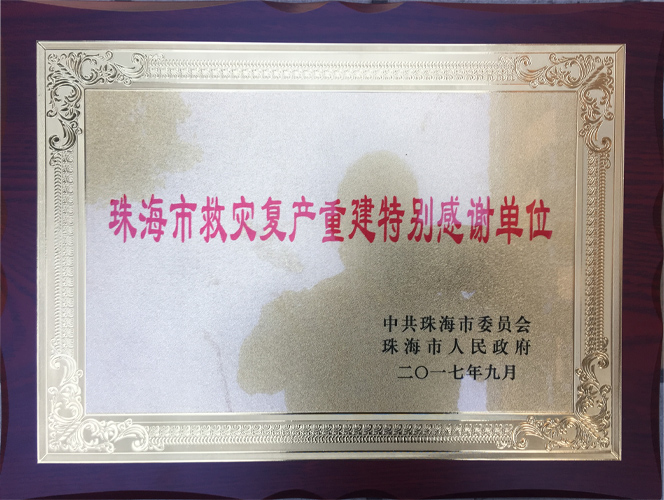 9月,綠友集團得到了中共珠海市委員會、珠海市人民政府的表彰,被評為“珠海市救災重建特別感謝單位”。