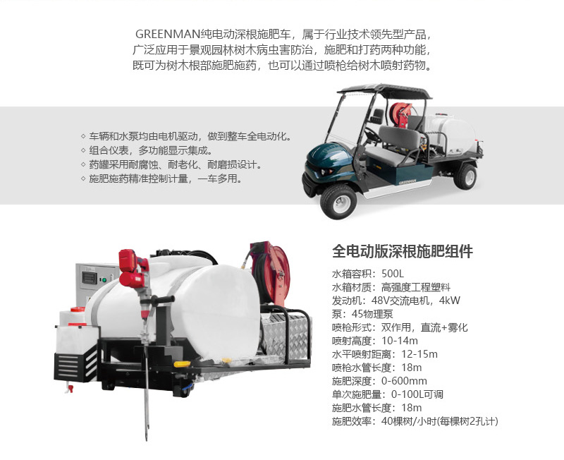 多功能深根施肥機,既可用于灌木,苗圃,行道樹的樹上害蟲防治,又可用于樹木根部的施肥,病蟲害防治等,實現了樹木病蟲害的全方面綜合防治。