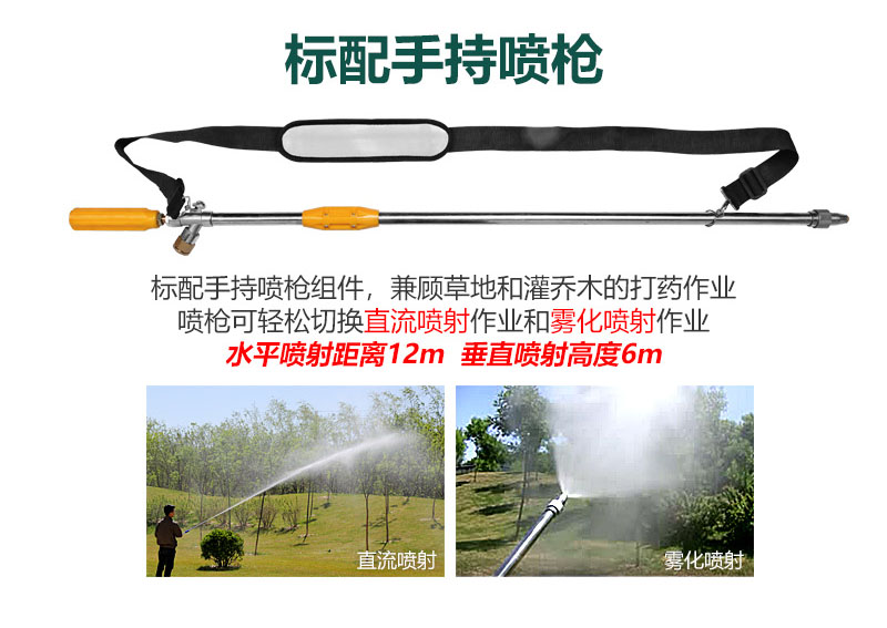 √ 配高壓噴槍,可用于灌木、樹木的打藥作業,也可用于清理小廣告、灰塵等。